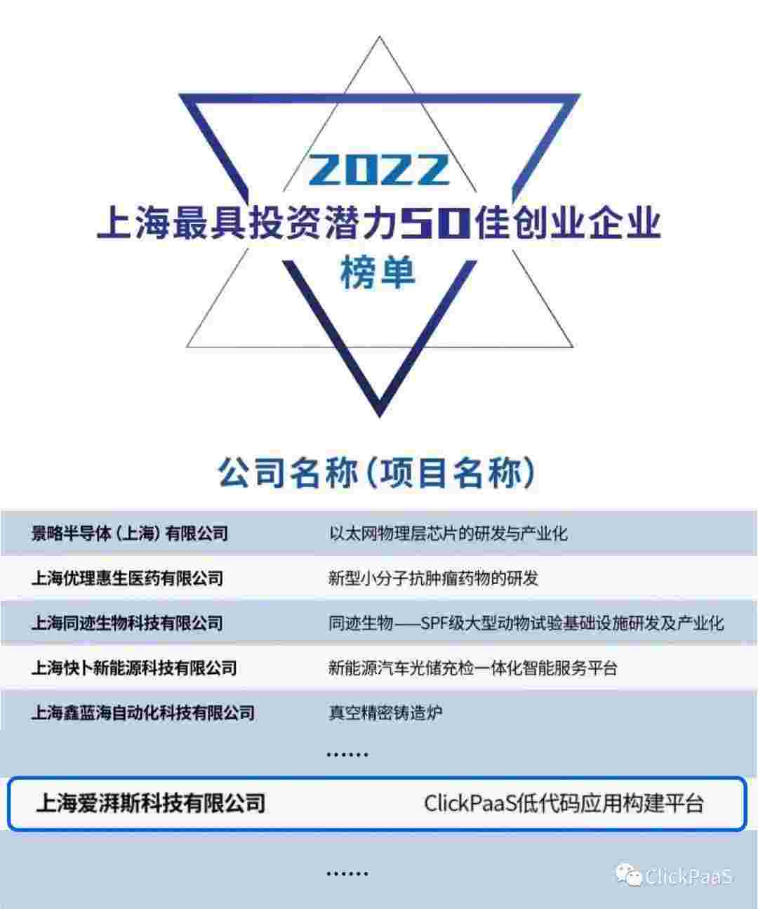 沃钱包 作为国内低代码PaaS平台的领军企业,,与120家创企入围角逐。。。。期间接受了来自德同资本、、、、领中资本等知名投资机构的10位投资人组成专家评委团的背靠背盲选。。。。并最终入围“2022上海最具投资潜力50佳创业企业”榜单,,,,被列入“上海市重点培育创业企业库”。。。。