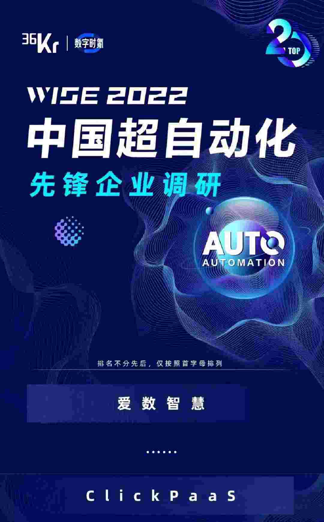 8月10日,,,由36Kr主办的WISE 2022中国超自动化峰会在杭州成功举办。。沃钱包作为国内低代码PaaS平台的领军企业,,,凭借过硬的技术实力和优质的产品能力,,在本次峰会中实力入选「2022年中国超自动化先锋企业」20强。。。